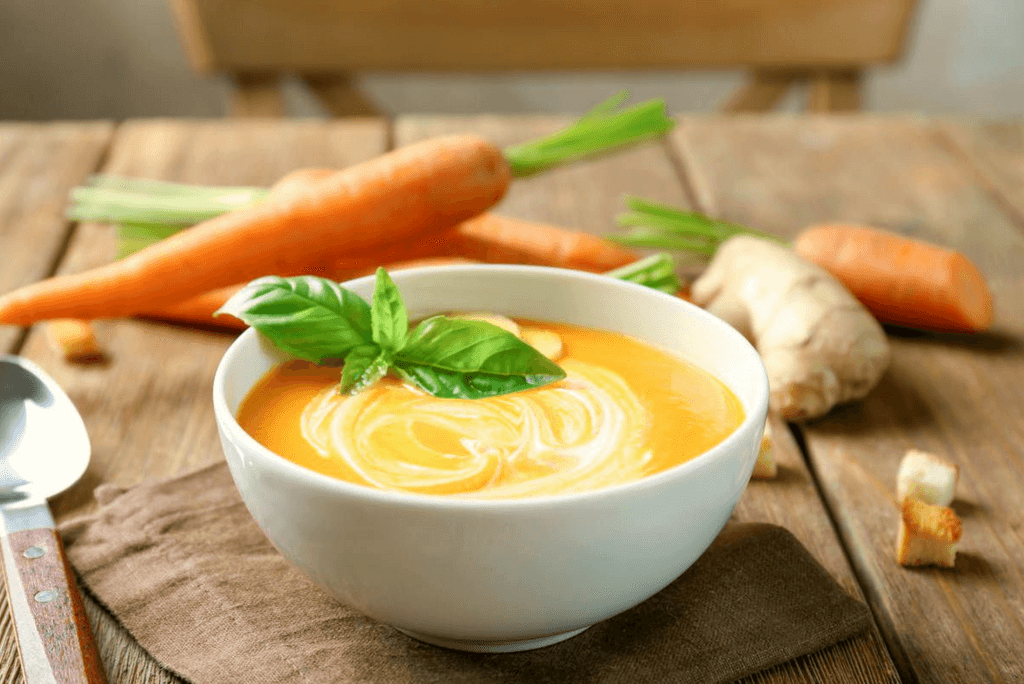 Perfect for when you’re feeling sniffly, this creamy and zesty soup is vegetable-based, so it keeps both calories and cholesterol low.